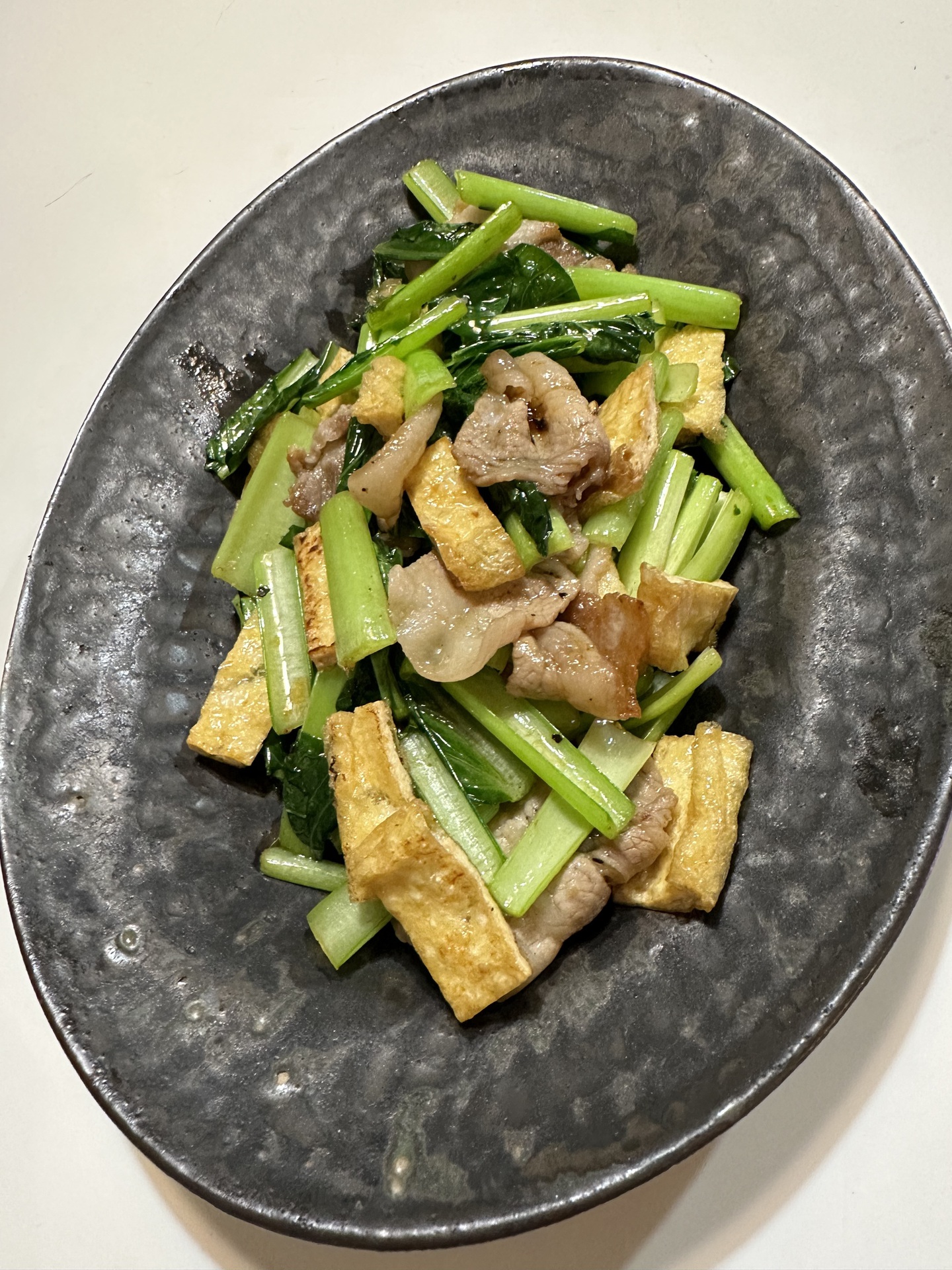 4.サッと炒めたらオイスターソースを入れ和風出汁(鶏スープでも良い)をちょっと入れて、混ぜる。